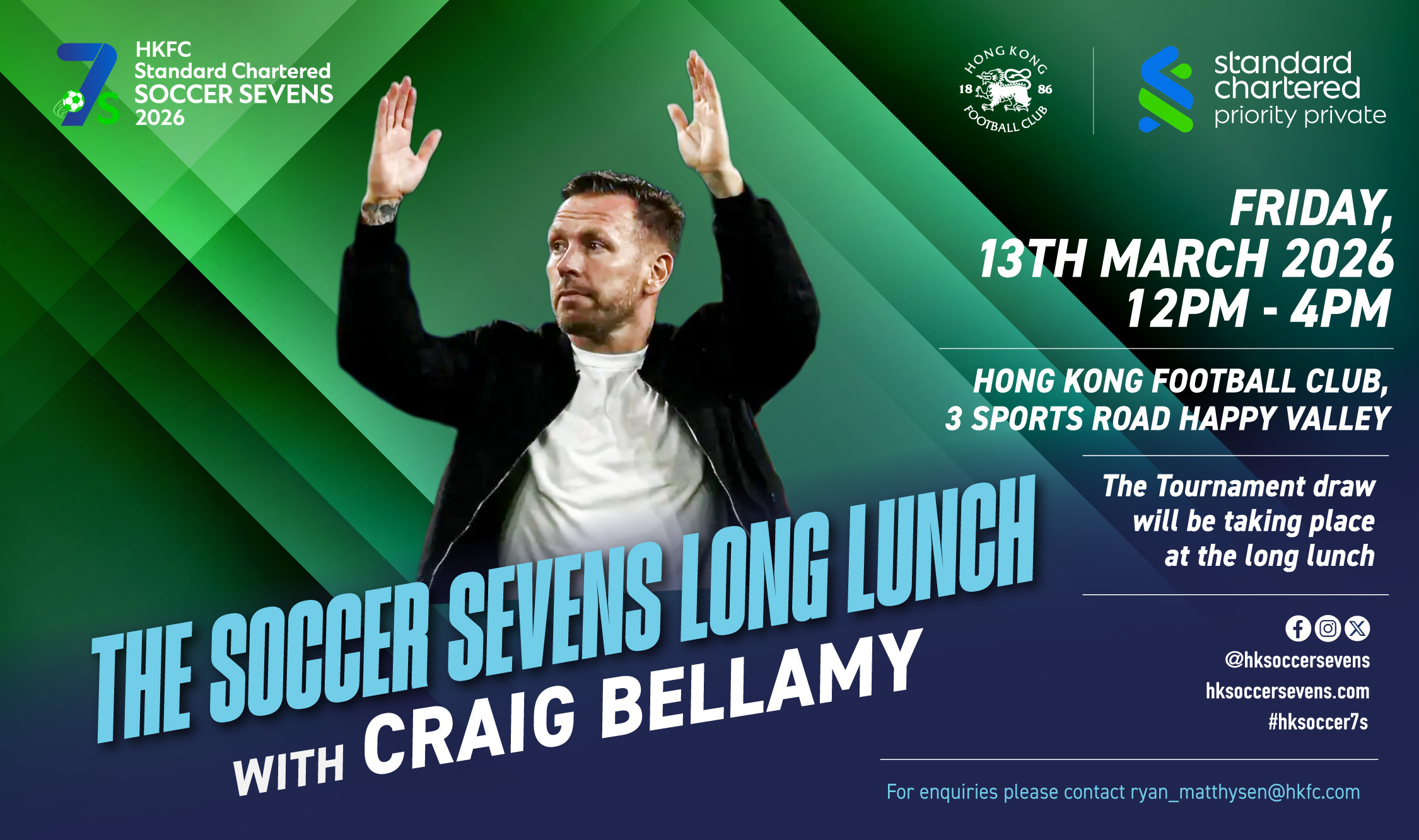 HONG KONG, 31 January 2026 - Join us for a special HKFC Standard Chartered Soccer Sevens Long Lunch, as former Liverpool, Manchester City, Wales, and current Wales manager, Craig Bellamy officially launches the 2026 tournament.